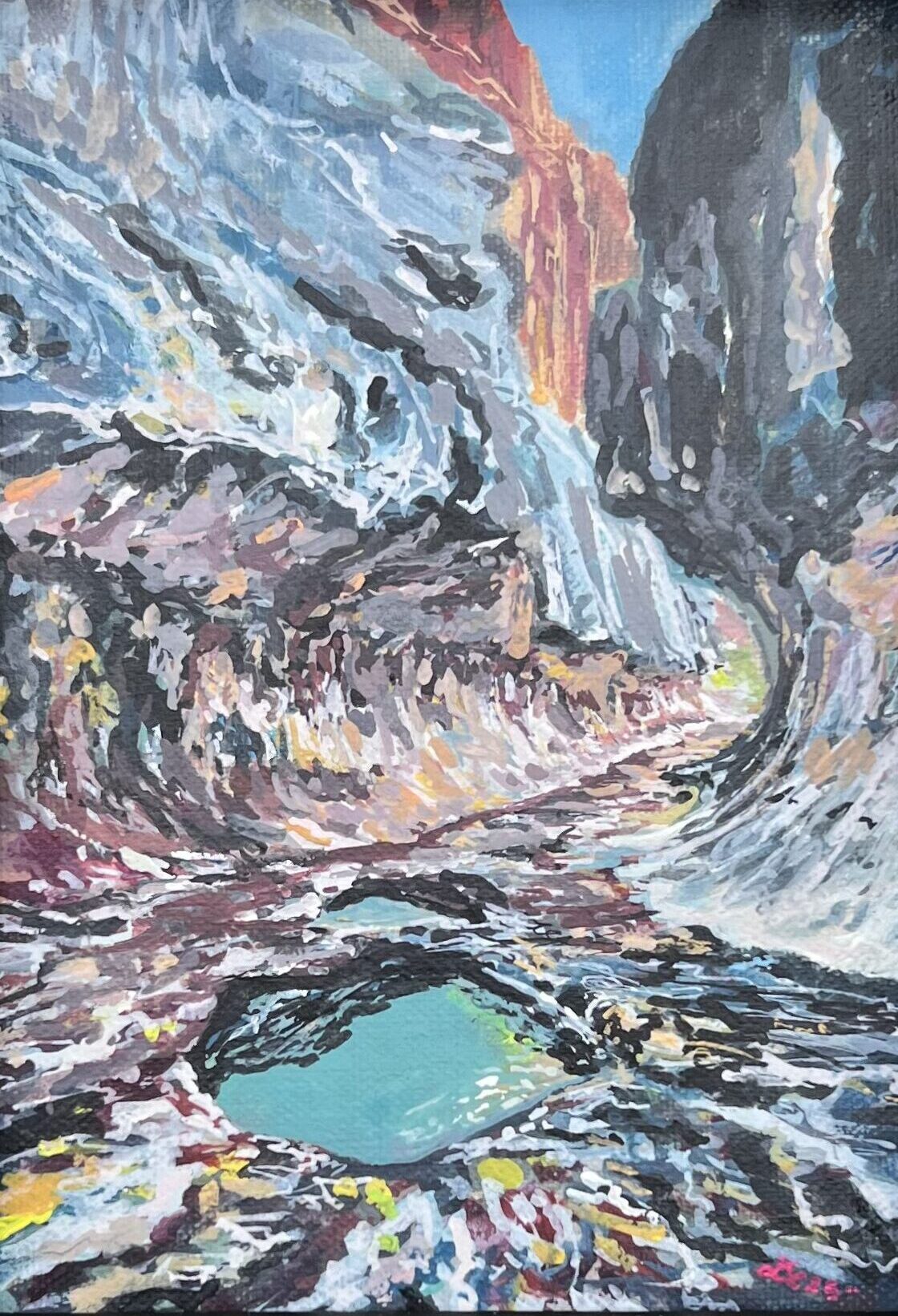 5 x 7″ linen panel sealed with wax varnish